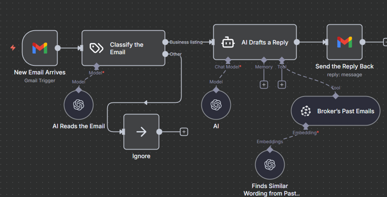Built an AI system that automatically responds to incoming buyer inquiries and books meetings saving the broker time and helping him scale faster.